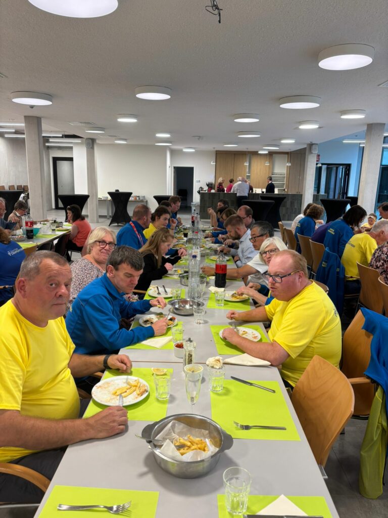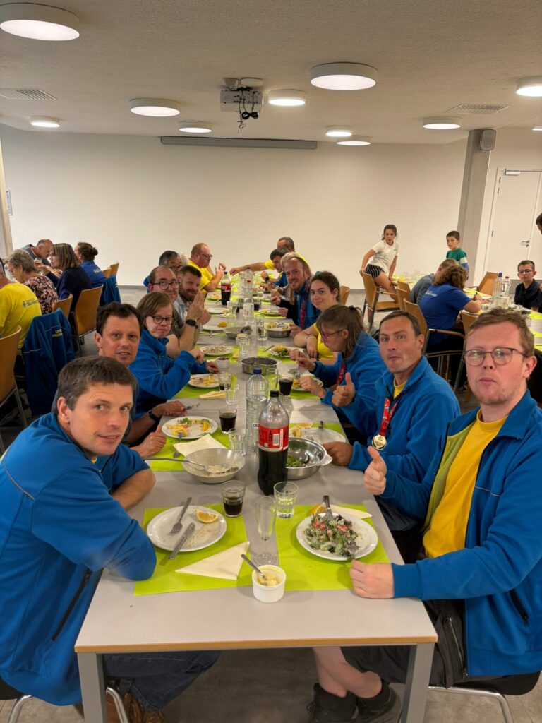 Het was gezellig met aperitief, vol-au-vent met frietjes en dan een stukje taart als dessert en het was lekker. Zo zijn we weer klaar voor een volgend jaar Atletiek, Bocce, Omnisport, Voetbal en Zwemmen.